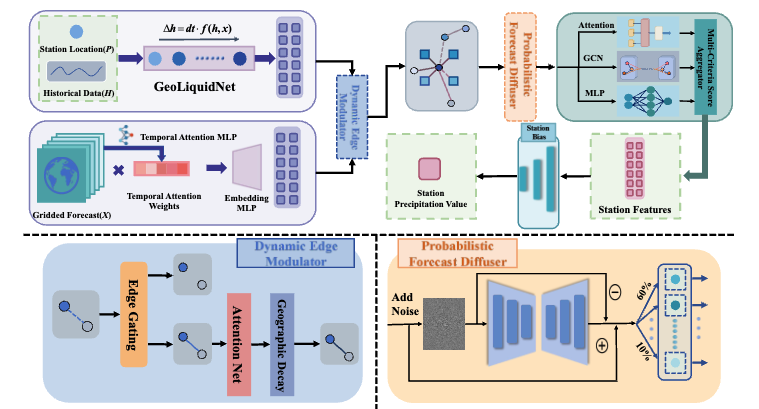 DiffLiG: Diffusion-enhanced Liquid Graph with Attention Propagation for Grid-to-Station Precipitation Correction