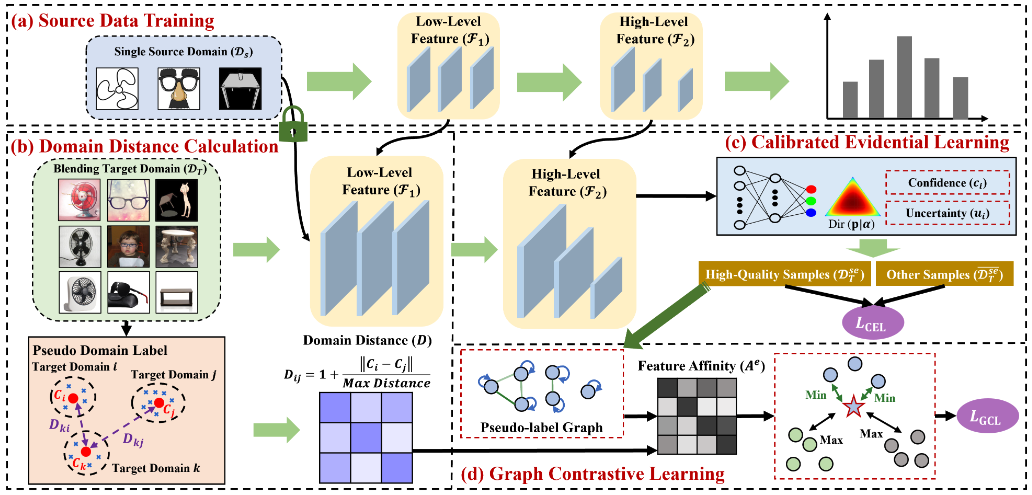 Evidential Graph Contrastive Alignment for Source-Free Blending-Target Domain Adaptation